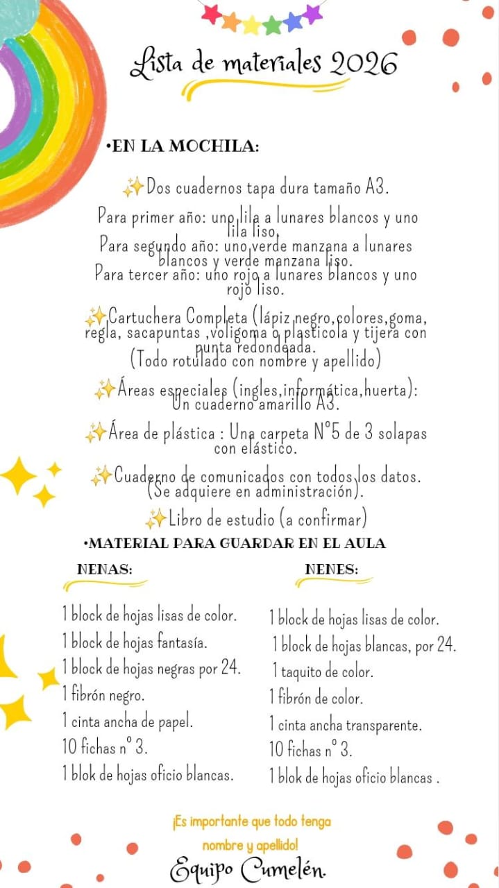 Los esperamos con mucho entusiasmo para compartir juntos un nuevo año de aprendizajes, crecimiento y hermosos momentos.